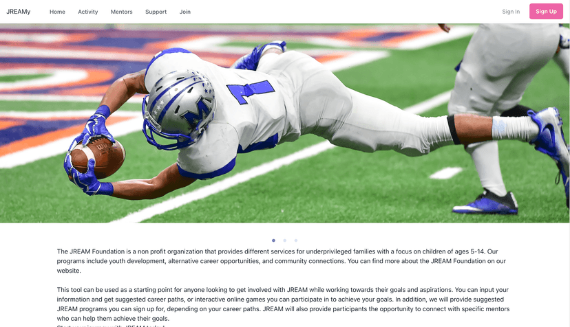 JREAMy is a tool created for The JREAM Foundation that creates personalized timelines for students based on their goals and provides them with actionable steps towards their goals.